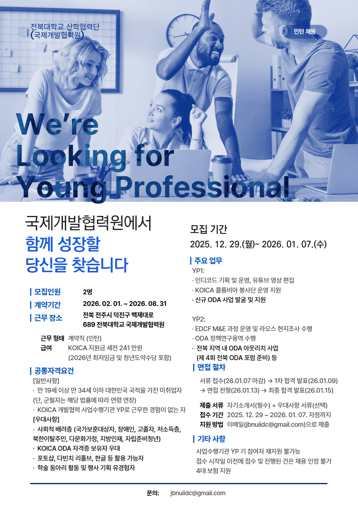 근무장소: 전북 전주시 덕진구 백제대로 689 전북대학교 국제개발협력원